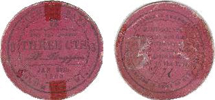 Comments: Here is another Wisconsin scrip mate in cardboard chit form. Like the previous, it also carries a date (not only the year 1863, as on the CWT, but also the day and month) of issue. Which came first, the token or the chit? Whichever it was, we can say positively that the dated chit proves that cardboard scrip was not supplanted by metal tokens, but continued to circulate side by side with them as emergency money (other chits with 1864 dates are known). Four examples of this scarce chit are known to your writer. The merchant’s handwritten initials F H appear on the back, probably to make the chits redeemable. They have no imprint but are in the style of the Chicago printer S. S. Millar, who during the war advertised and made similar round cardboard chits, some with imprints, for other Midwestern merchants.
