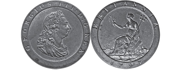 People who have been aficionados of British coinage know that the pre-decimal system had within it for one year a massive copper two-pence piece often called a cartwheel. Today, it is a coveted collectible, since it was only made in 1797, and has a wide range of values. The rim is amazingly wide, and often the value of a particular piece is based not only on its condition, but on the number of dings or blemishes on that rim.