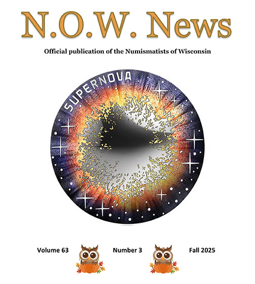 From the EditorHello everyone, It’s a pleasure to introduce another issue. I will not bore you this time with long rambling from myself – that can be found in my column :P later in this release. Apart from work from me, we have some new archival content, an experiment with artificial intelligence, I will not spoil here, and a piece from Mark Benvenuto on the end of a cent-sized coin in one of America’s European allies. Enjoy, and soon we will get into the winter season of collecting, which keeps so many of us passionately engaged in the hobby and, in the case of my spouse, sighing and rolling her eyes. As well, there is a slight housekeeping issue I need to get into. The deadlines for all content will be firm going forward. My day job has gotten busier, and so if items are not in by the time listed on the next page, I cannot take them and will not take them until the next issue. I recognize sometimes we do not always know dates for things, but, worst case, I encourage people to write what they know and add later. Be well, and, as always, happy collecting! Evan J. Pretzer The image is the front of the 2025 Austrian 20 Euro “Supernova.” The piece was selected as the Coin of the Year at the annual award show during the American Numismatic Association’s World’s Fair of Money show on Aug. 21. It also won the Most Artistic Coin category, and Austria is a regular contest contender, having won the Coin of the Year award in 2000, 04, 15, 22, and 2023 in addition. It has a concave obverse, features the Crab Nebula, and is the inaugural issue in the Austrian Mint’s ongoing “The Beauty of the Universe” series. Welcome to the Numismatists of Wisconsin!BRIEF HISTORYN.O.W. was established in 1960 by a small group of Wisconsin collectors including facilitator Chet Krause. Their objective was simple; to encourage and promote interest in numismatics, to cultivate friendly relations between Wisconsin collectors and local coin clubs, and to educate and assist new hobbyists. It was decided to formally organize N.O.W. that summer at an open house in Iola at the offices of Krause Publications. On July 8th, 1960 a large crowd attended, nominations of officers were set forth and elections were made. By day’s end, N.O.W. had been formally established and the membership roll had reached nearly 100. As Chet put it, “From that day on, collectors of the state had one more element of common ground to talk about, for the idea of a state organization had come to reality.” And, as they say, the rest is history... N.O.W. has not changed its objectives and is still going strong some 60+ years later. ORGANIZATIONThe N.O.W. board of governors meets three times yearly to discuss organizational issues for the betterment of the club. These meetings are held at predetermined sites throughout the year, usually in conjunction with one of the many state local coin shows. One of these shows is designated as the annual N.O.W. show, which is co-sponsored by a host club and N.O.W. The yearly general membership meeting is held at this show. NOW NEWSWhat started out as the organization’s excellent newsletter, has become an award-winning quarterly club journal/magazine. Recognized by the American Numismatic Association as an Outstanding Club Publication, NOW NEWS aims to continue the long-established tradition of publishing original articles written by N.O.W. members, as well as interesting items from outside sources around the world of numismatics. WEBSITEOur website is designed so visitors can get a feel for the organization. Here you can see some photos, learn about local shows, read a select few of our award-winning articles, and of course, join N.O.W. So, after checking out this site, I urge you to join our state club, get involved, and start enjoying all the perks of membership asap! |