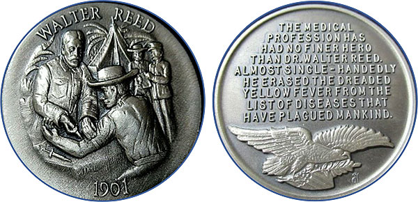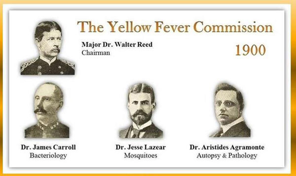 The commission was led by Major Walter Reed (Spt. 13, 1851-Nov. 22,1902) starting in 1901. Under his leadership the team confirmed the theory put forth by Cuban physician Carlos Finlay (Dec.3, 1899-Aug. 20,1915) 20 years previously (1881) that the “vector”, the source of disease transmission, as it is called, is transmitted by a particular mosquito species-of the Aedes aegypti, rather than by direct contact. This insight gave impetus to the new fields of epidemiology and biomedicine. Reed had first observed in 1896 in the area of the Potomac River that soldiers did not get yellow fever from various activities, such as drinking river water, but rather soldiers that had participated in activities such as walking or hiking in swampy areas where there were mosquitos caught yellow fever.